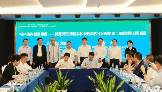 (2023年5月23日,宁陕县在深圳举行林业碳汇交易签约仪式,现场签约交易林业碳汇项目2个,交易额600万元。赵晓骞 摄)