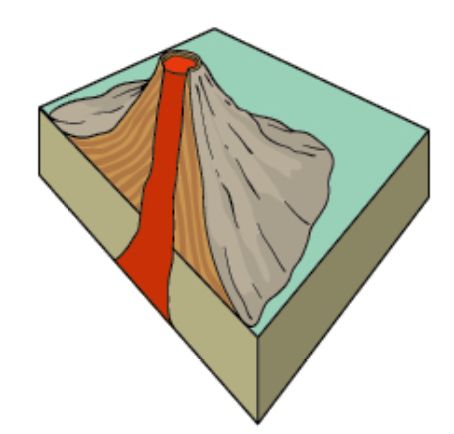 中心式喷发:岩浆沿颈状管道的一种喷发。喷发通道在平面上呈点状,又称点式喷发。其特点是喷发后会形成火山锥(火山喷出物在喷出口周围堆积而形成的山丘)。